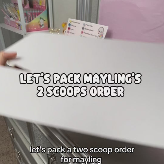 Each scoop is hand-picked just for you. I do the scooping myself and fill your box with a magical mix of kawaii treasures from 25+ categories! Think plushies, stationery, jewelry, stickers, keychains, and cozy lifestyle goodies. Every scoop is one-of-a-kind, so no two boxes are ever the same 💕